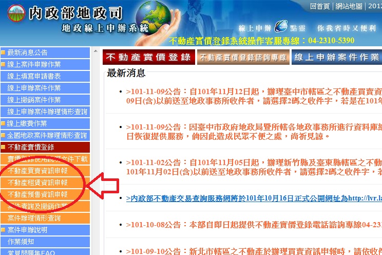 9.如果要開始申報,請按[是(Y)]鍵,將會開啟不動產實價登錄的網頁,請從右側選取所要申報的項目
