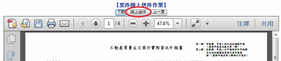 19.查閱資料無誤時,請按[線上送件],當操作畫面及申報書上方帶出「申報書序號」資料,即表示已完成該案件之申報作業